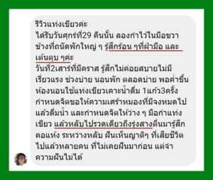 • ช่วงแรก จะมีการ Detox ล้างพิษ เช่น ถ่ายท้อง คัน ไอ ผื่น ฝัน